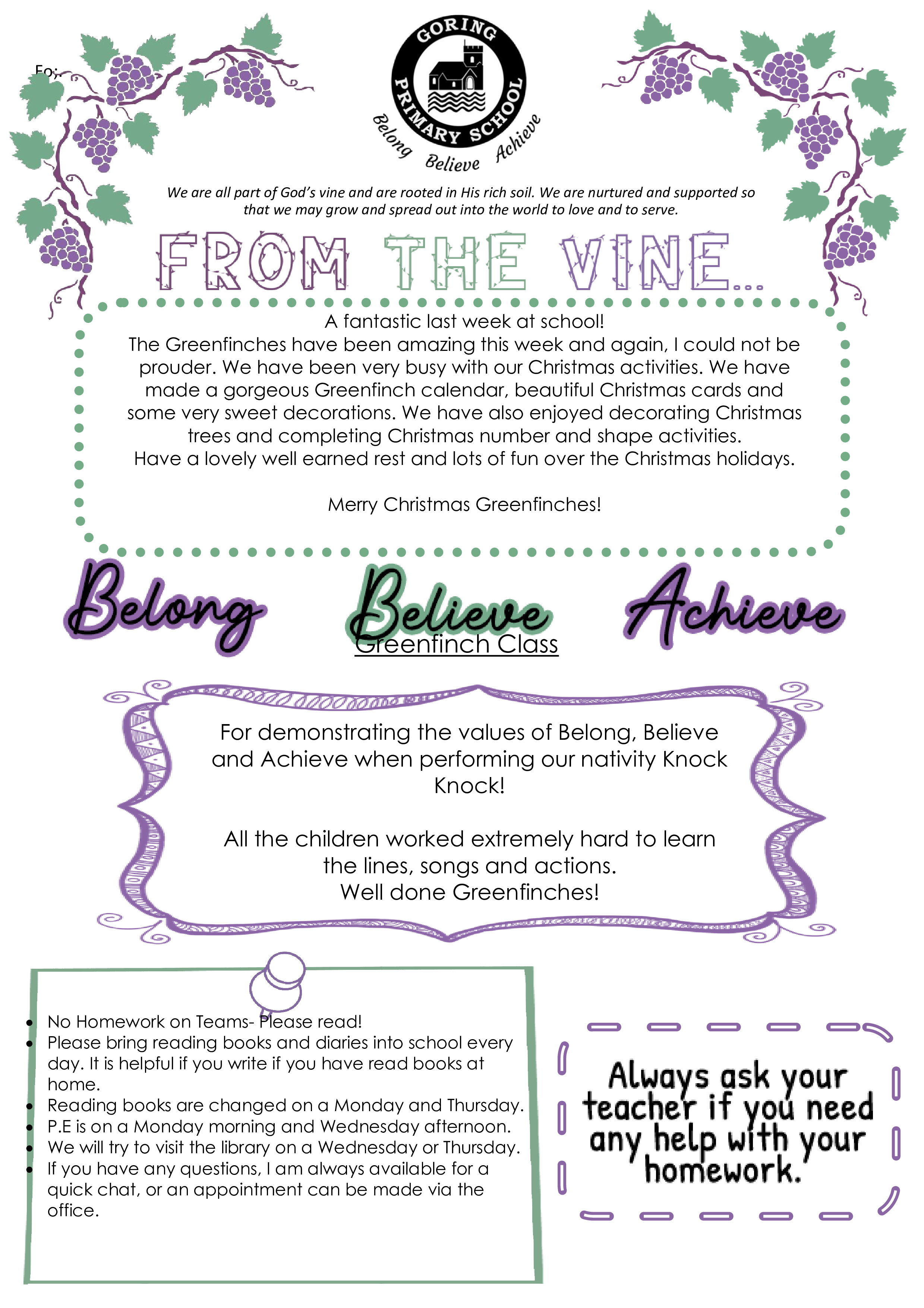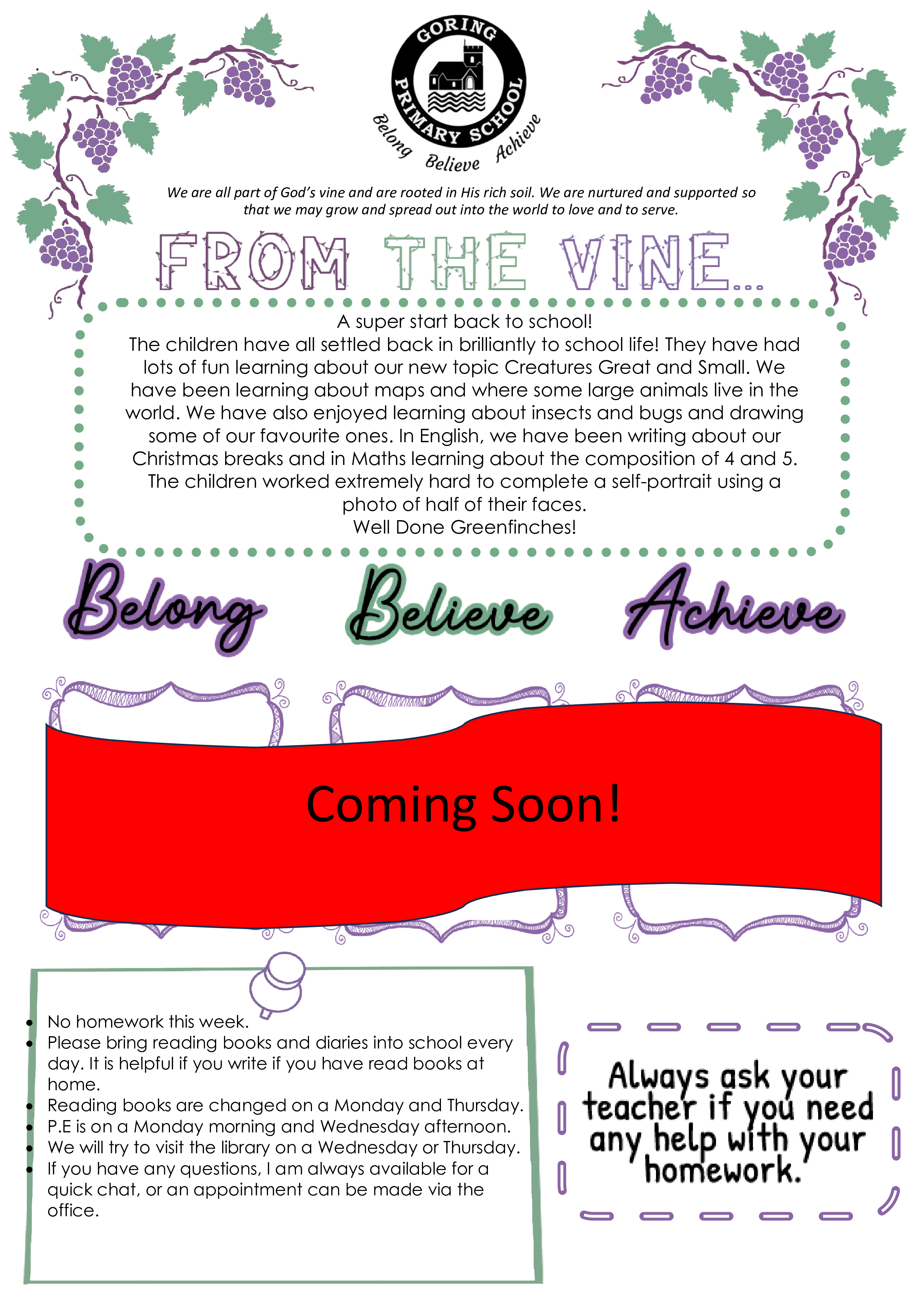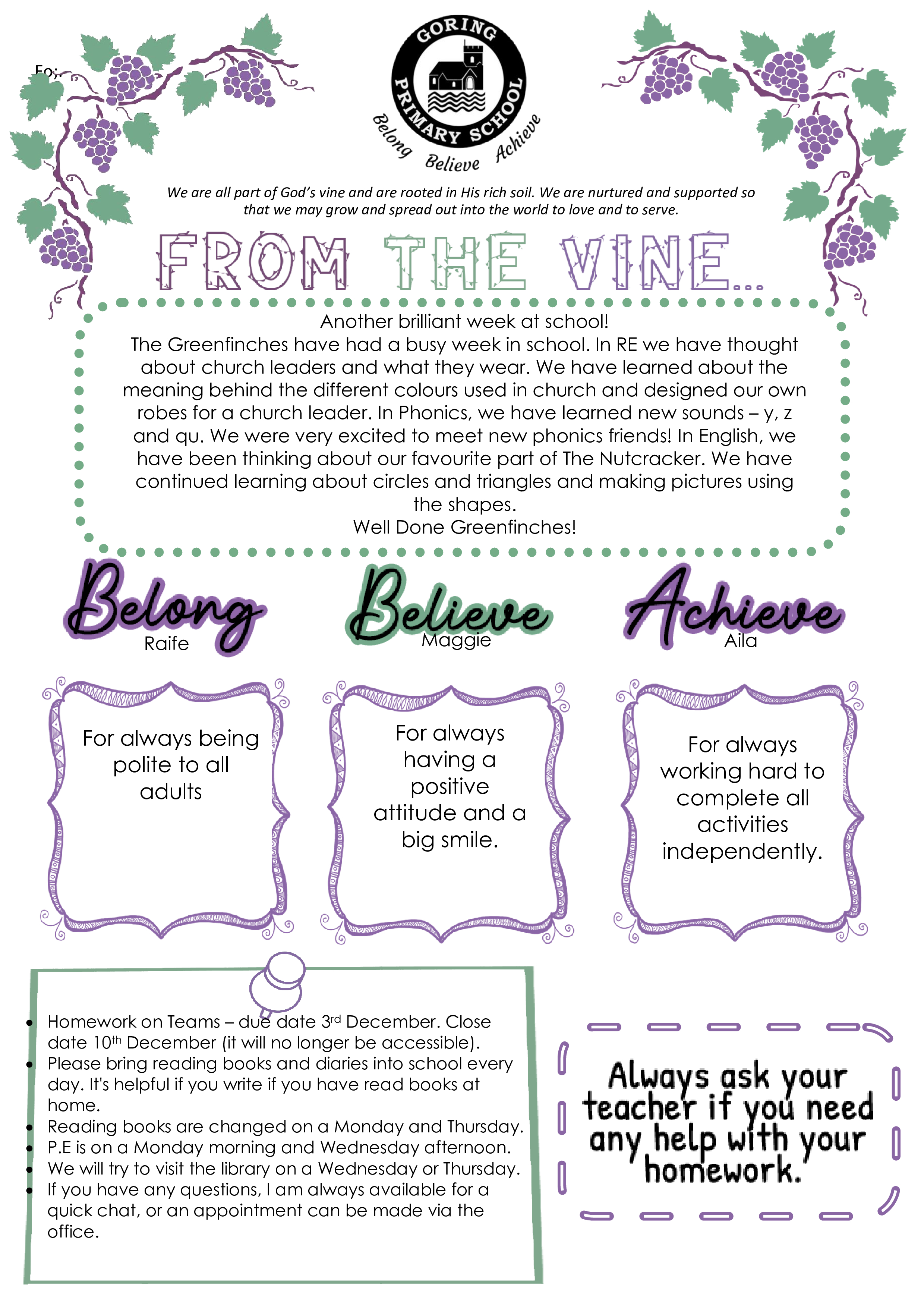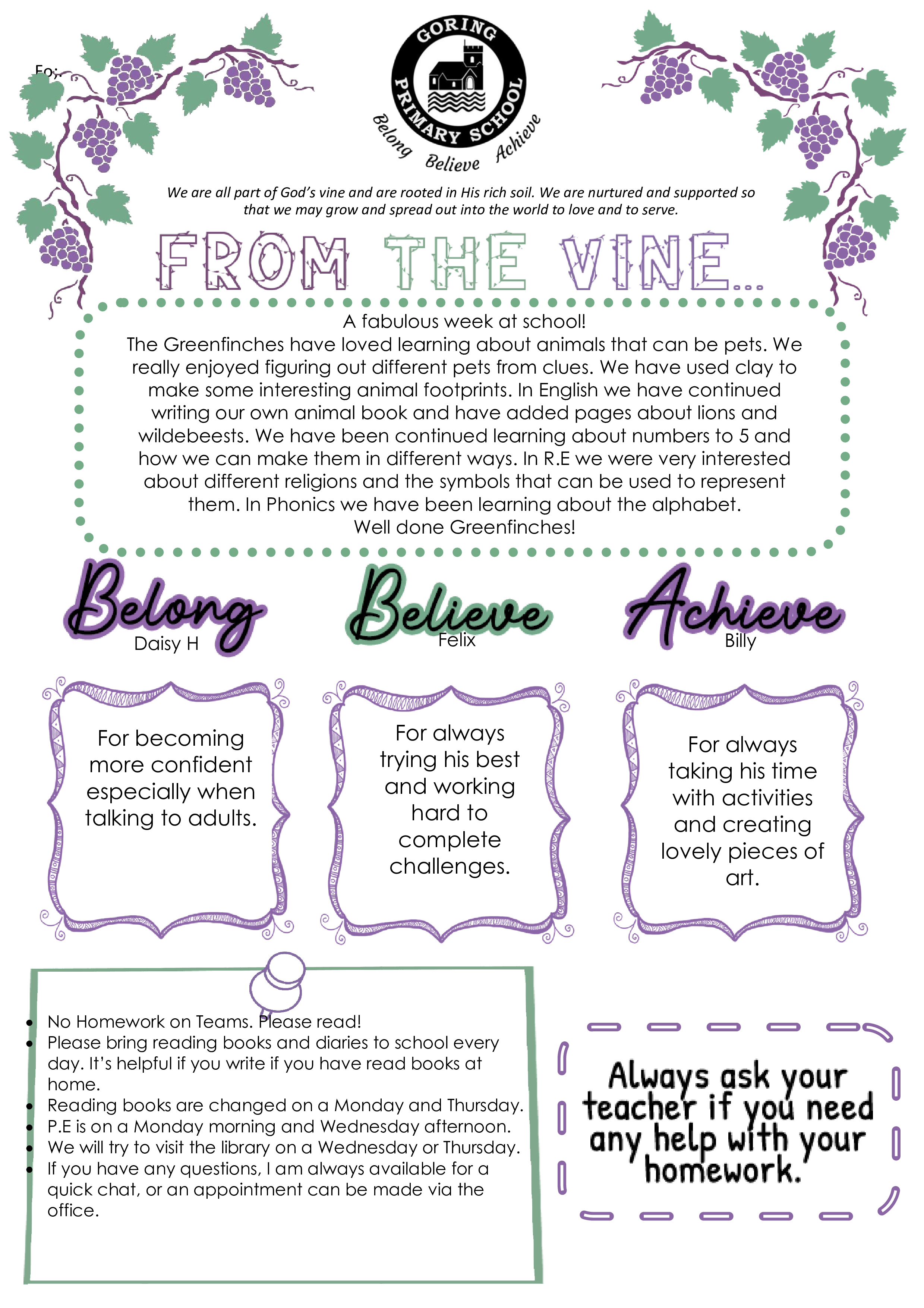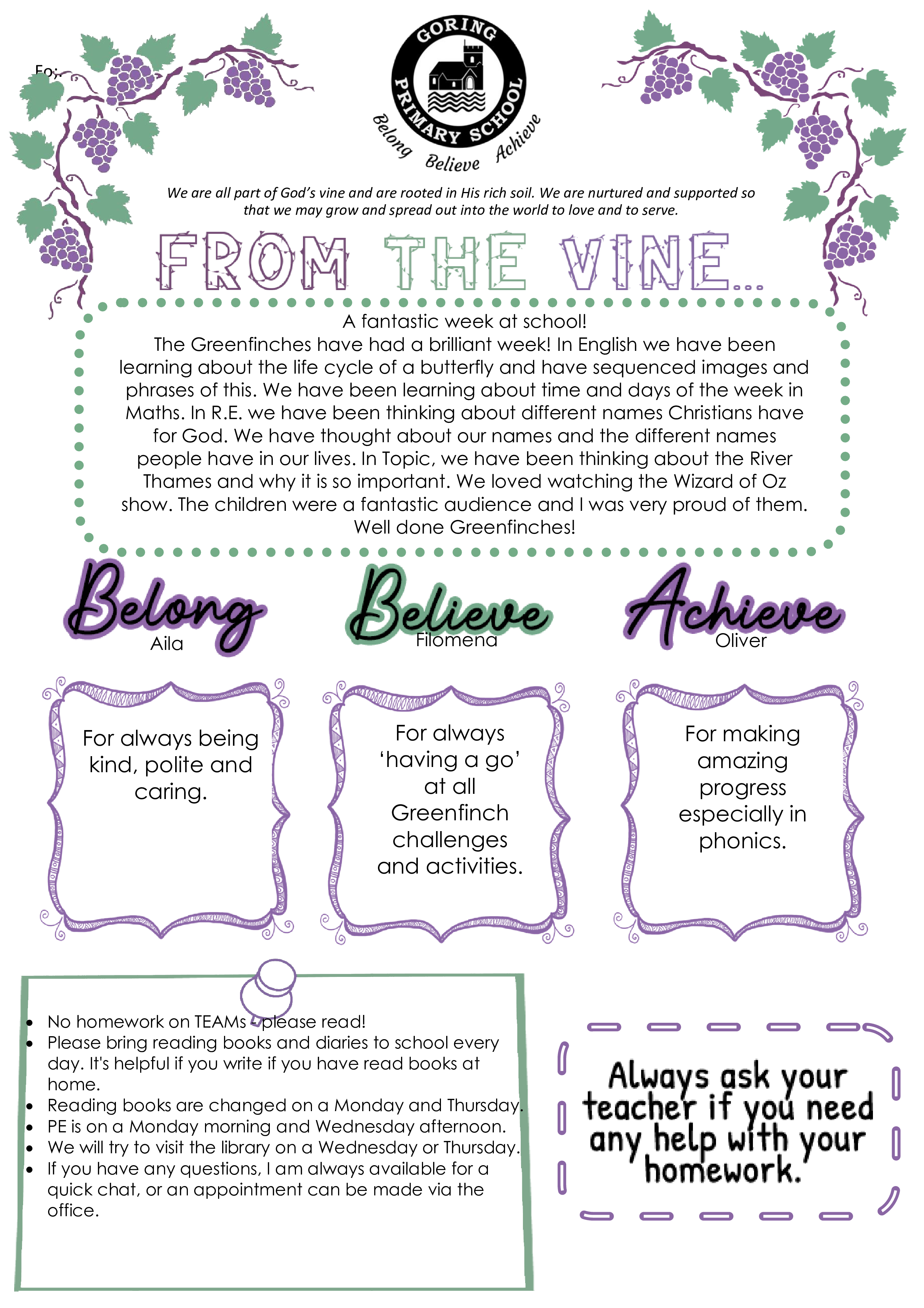 Welcome to Greenfinch class. Here is our newsletter showing all the exciting things we have been doing this week.