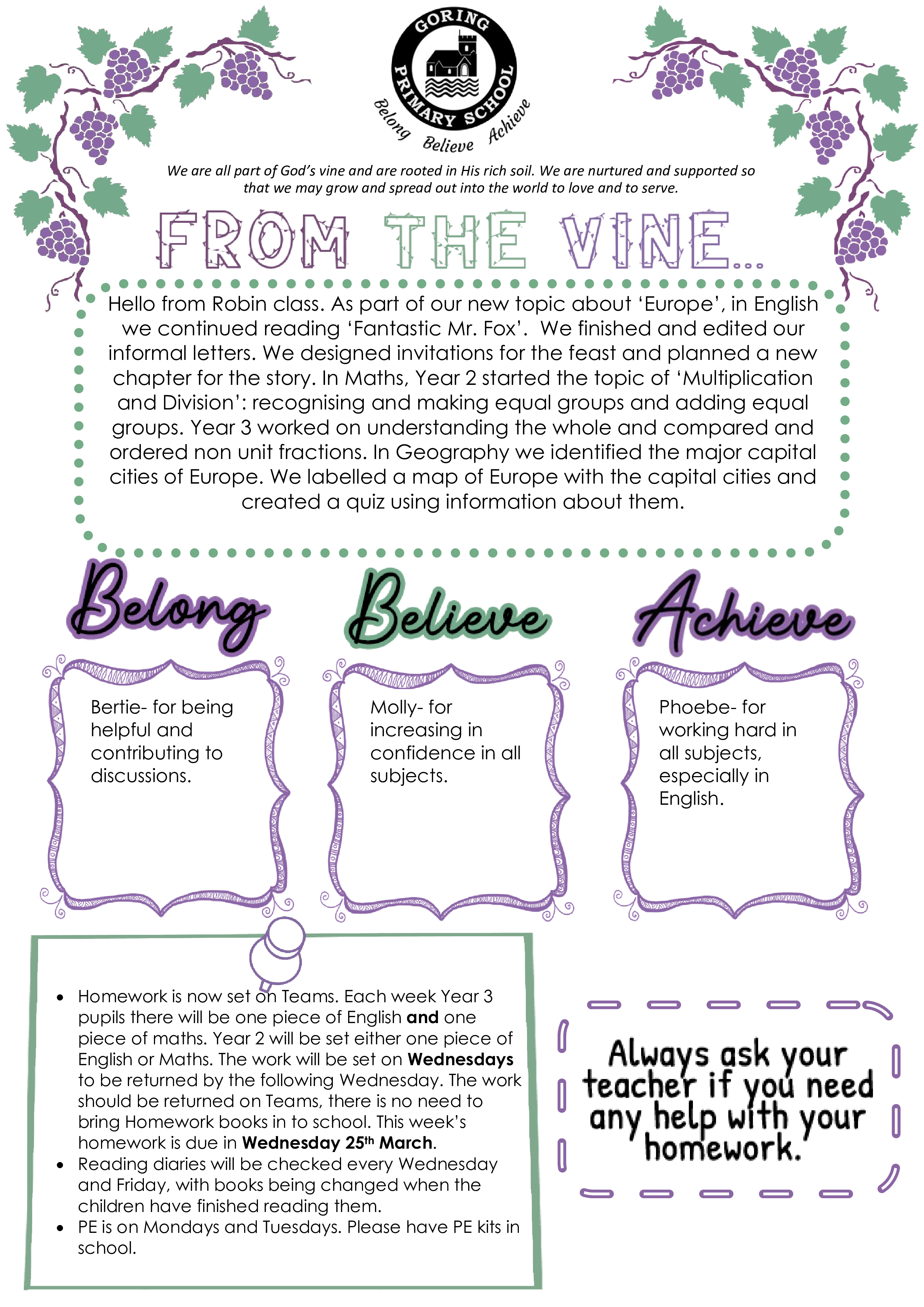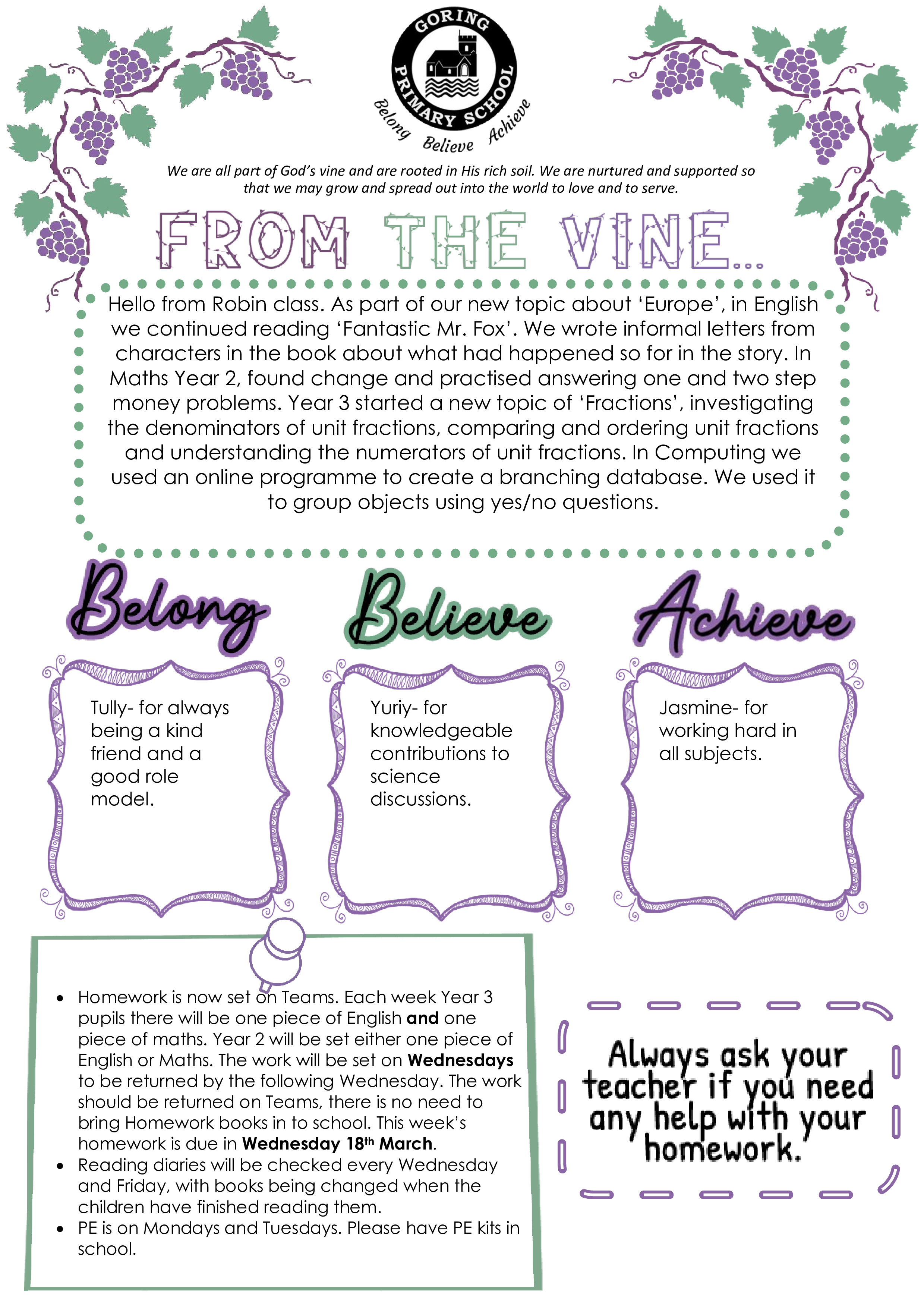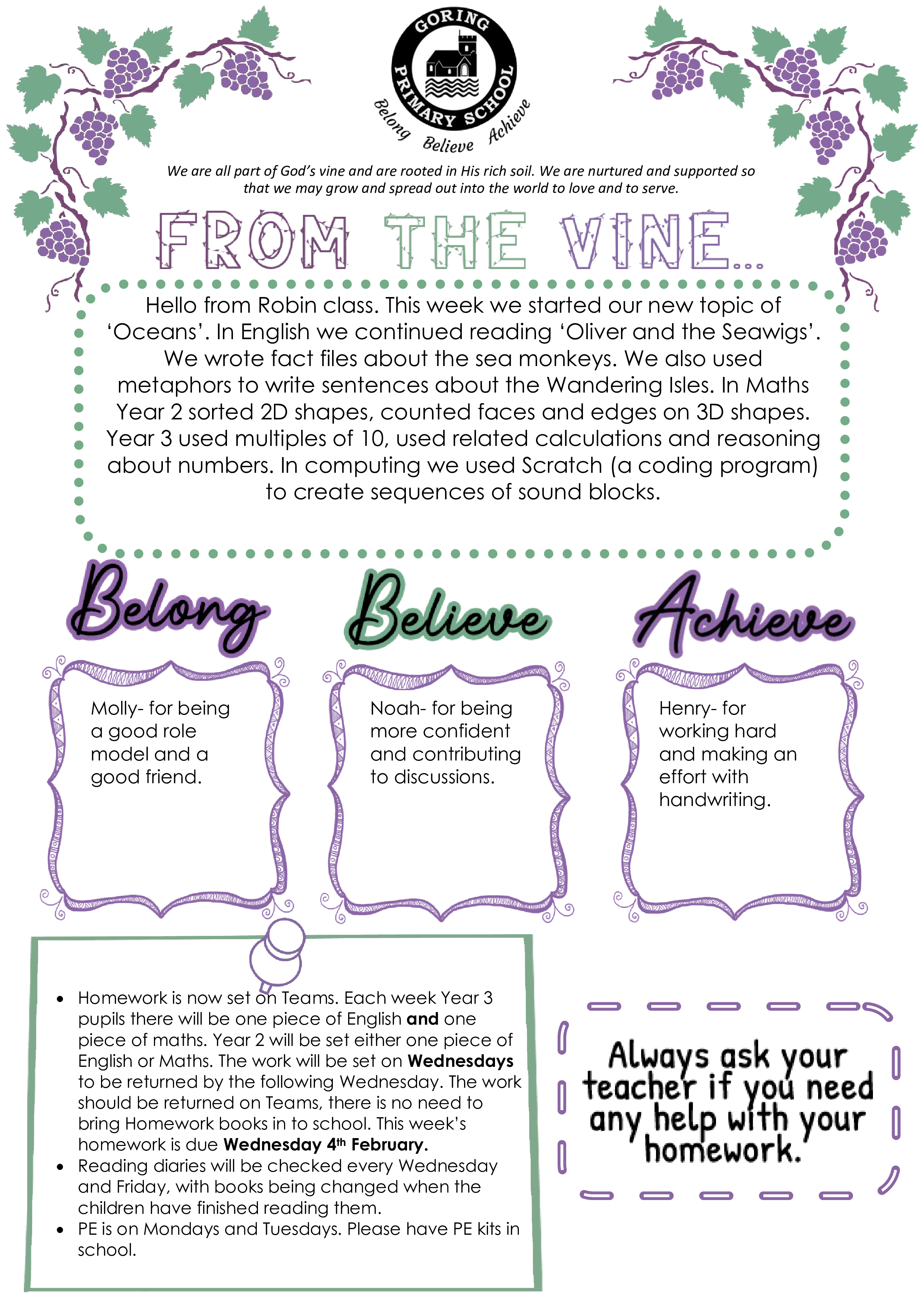 Welcome to Robin class. Here is our newsletter showing all the exciting things we have done this week.