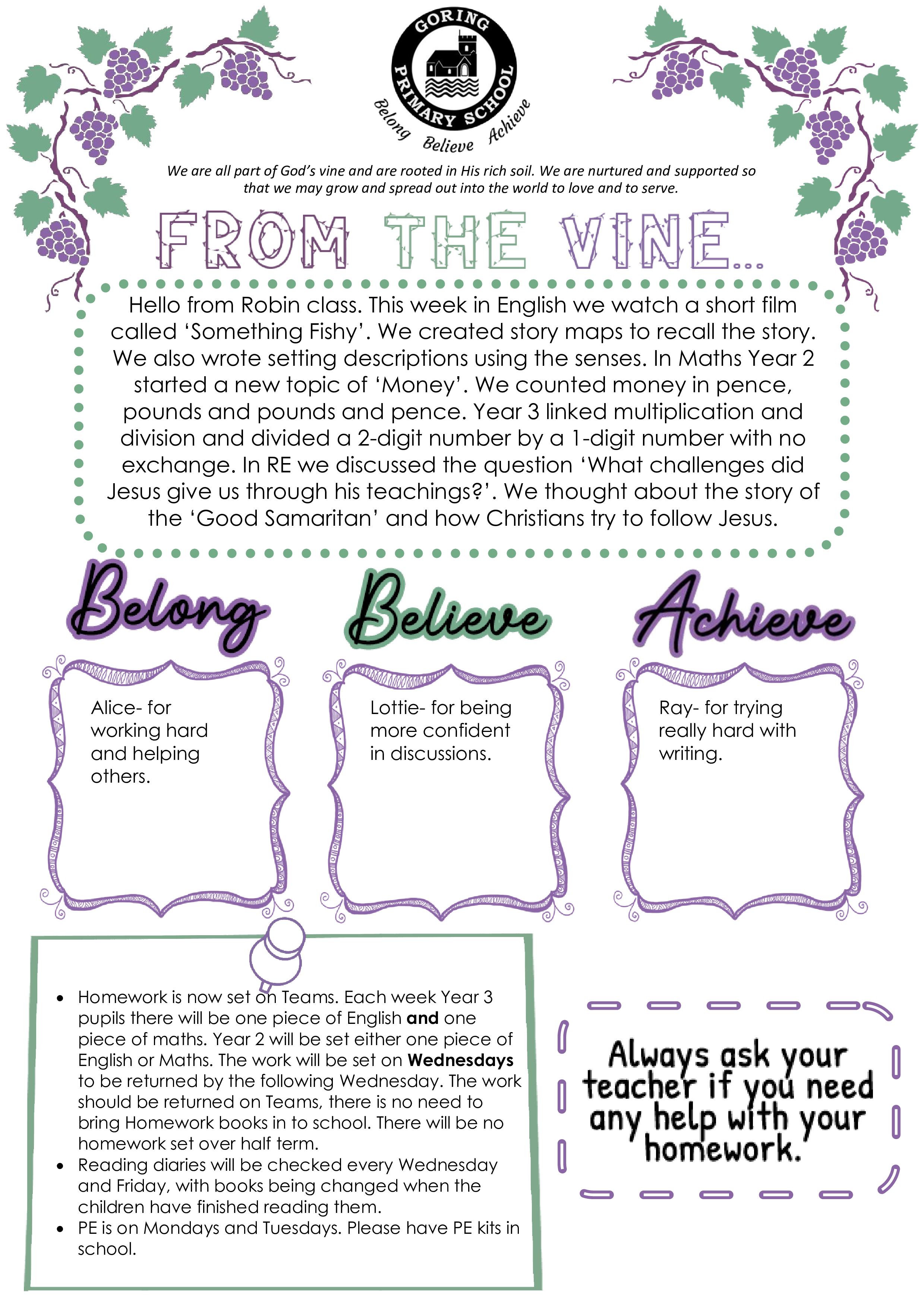 Welcome to Robin class. Here is our newsletter showing all the exciting things we have done this week.